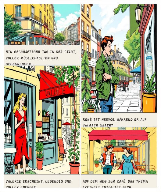 René ist sehr in Philosophie interessiert. Er hat Valerie angetroffen beim tanzen. Heute holt er sie bei der Apotheke ab.Sie reden miteinander über das Thema FREIHEIT. SIE SETZEN SICH IN EIN CAFÉ. OHNE ERZÄHLT VON DER PHILOSOPHISCHEN SEITE. UND VALERIE MEHR ÜBER DAS PRAKTISCHE