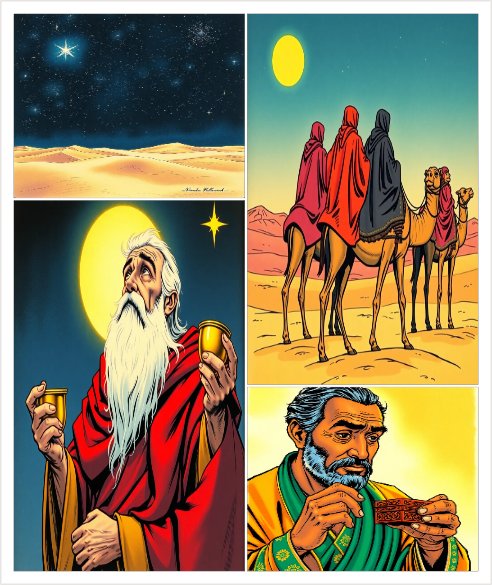 Por la fecha de enero quisiera recrear una historia de los reyes magos ( reyes de oriente ) apegado a la historia por favor ๐