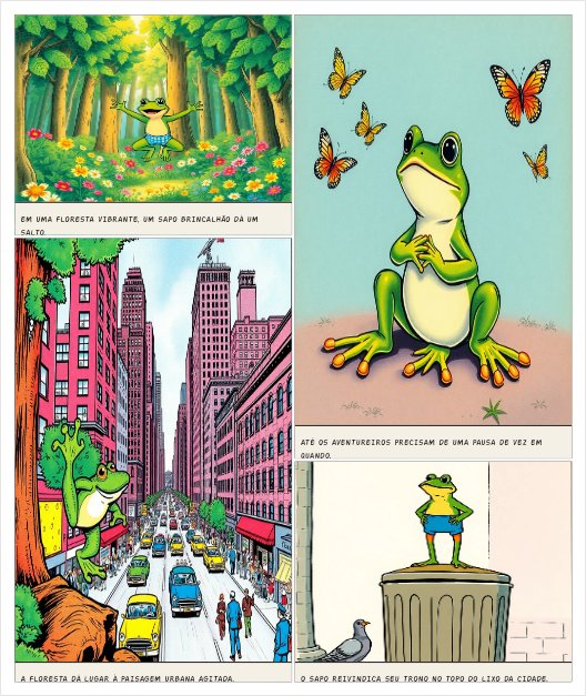 Era uma vez um sapinho que usava short azul quadriculado que pulava, de um lado pro outro. Que pulava pra frente e sentava no chão. E ele pula e pula na floresta. Depois ele se sentou, se deitou e dormiu na floresta. Pulou novamente e chegou na cidade. Ele pula pra frente, de um lado pro outro e depois sentou no chão. Continuou pulando até parar encima de uma lixeira da cidade. Depois continuou pulando pela cidade até entrar dentro de uma casa onde uma criança estava dormindo.