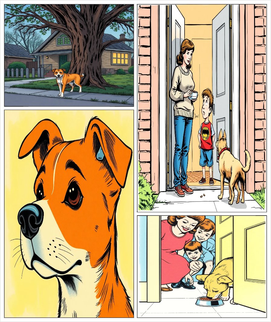 流浪的黄狗白面中华田园犬被一家三口收养了,从最初接触时的小心谨慎到后来其乐融融