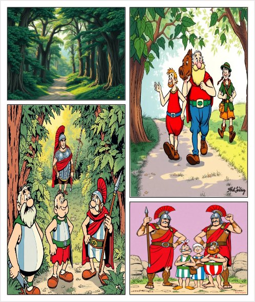 asterix und obelix sind im wald mit einem Iren und treffen auf eine römer soldaten die auf pratoulie sind und die schlagen sie zusammen