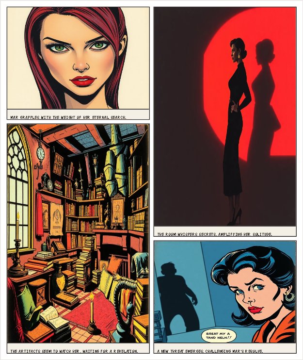 Descripción de imagen: Primer plano del rostro de una mujer alta /Mar). Ojos verdes intensos. Cabello rojo violeta, liso y elegante. Mirada penetrante. Hay una luz rojiza sutil reflejada en sus ojos. Fondo oscuro y misterioso. Estilo manhwa gl Texto (Narración de Mar): "Mi existencia ha sido una búsqueda interminable... Un vacío que ninguna sombra, ningún poder oscuro, pudo saciar..."