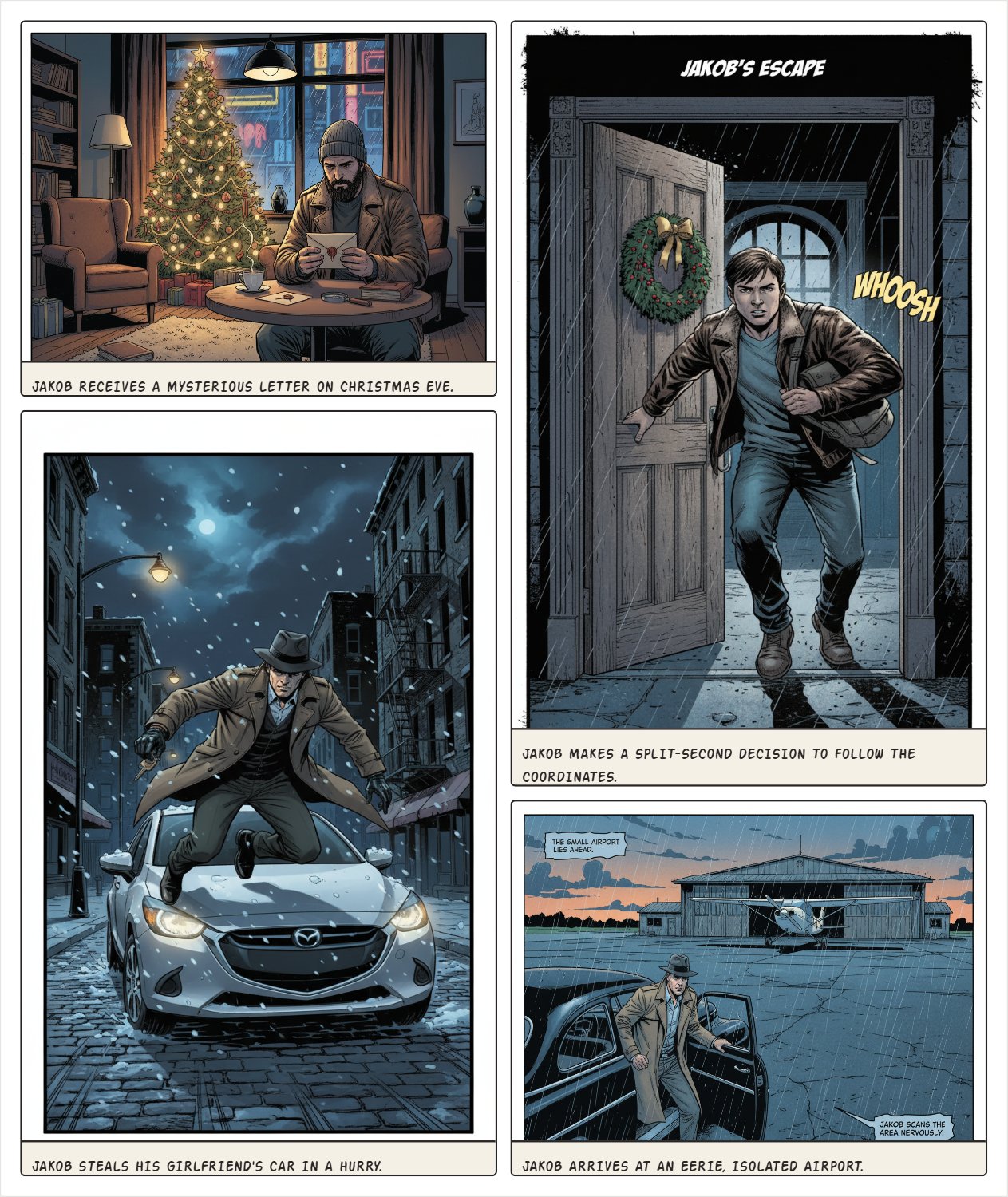 The adventures of Jakob Jakob works at MCI university and is the worlds best hacker. He is 25 years old, lightly tanned, bearded, with a vokuhila hairstyle and always wearing a beanie. on christmas eve he received a letter with coordinates on it. He always getting his hacking orders via letter. He immediatly left the house stole the car of his girlfriend jeanine, a white mazda 2 hybrid. Drive should take about 1 hour. He arrived on a small airport where a small plane is waiting......
