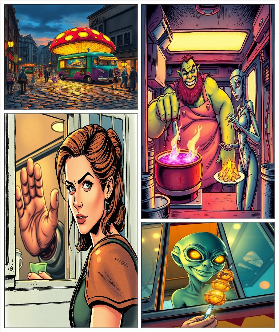 Three monster friends open a food truck serving dishes from their home dimensions, winning over s...