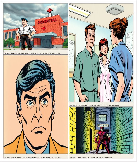 Este personaje se llama " blockman" es un empleado de seguridad que trabaja en un hospital y en su tiempo libre combate villanos Su aspecto : 1.80 de alto contextura musculosa usa barba candado , su vestimenta es una camisa blanca, pantalones negros , borsegos y una gorra azul