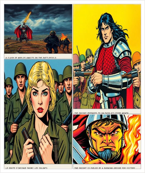 Un chevalier avec des ailes de dragon avec une épée de feu affronte des militaires modernes