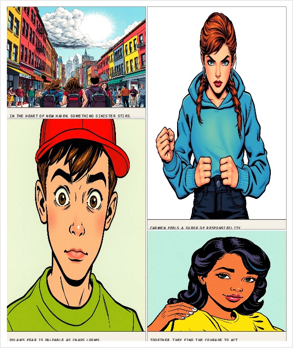 Genre: Superhero, Adventure, Friendship Target Audience: Young Adults Synopsis: In the vibrant city of New Haven, a group of seemingly ordinary teenagers discovers they possess extraordinary abilities. When a powerful villain threatens to plunge their city into chaos, these unlikely heroes must come together to safeguard their home. Along their journey, they discover not only the strength of their powers but also the value of friendship, trust, and teamwork. --- Chapter One: Awakening Powers