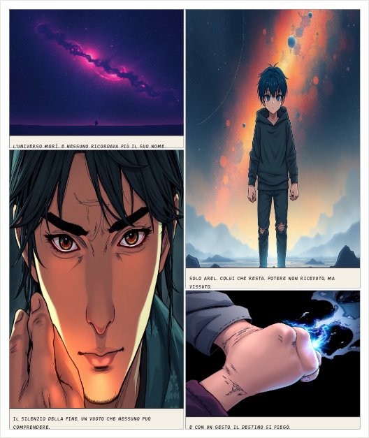 Nessuno ricordava più il suo vero nome. Lo chiamavano Arel, Colui che resta quando tutto finisce. Aveva l'aspetto di un ragazzo qualunque: capelli scuri, occhi spenti, mani segnate da cicatrici invisibili. Ma dentro di lui bruciava qualcosa che nessun dio avrebbe mai dovuto toccare. Arel non aveva ricevuto il potere. Lo era diventato.Quando il primo universo morì, non ci fu esplosione. Non luce. Non suono. Semplicemente... cessò di esistere. Arel aveva chiuso la mano.