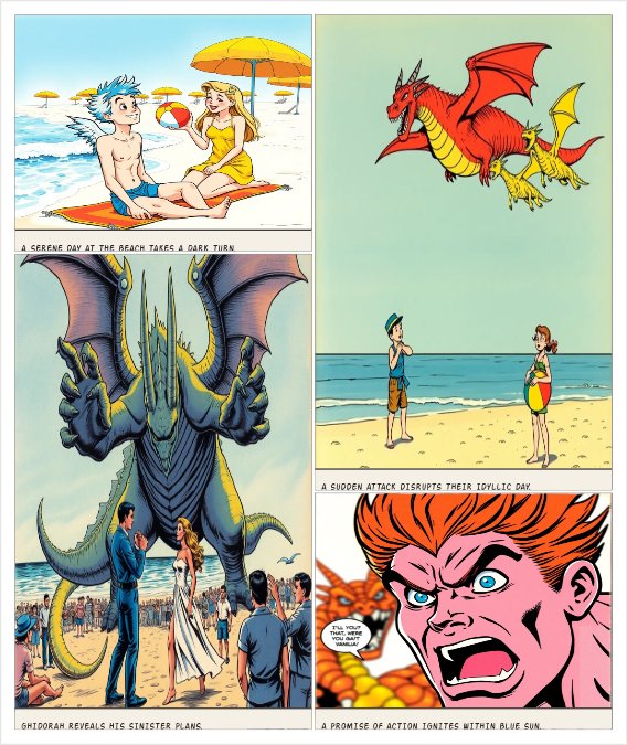 A boy with blue and white hair and wings named Blue sun was in the beach with his blonde girlfriend named Vanilla on a date until suddenly 3 humanoid dragons flew down upon them, one red humanoid dragon named Ghidorah and two yellow humanoid dragons named Ichi and Kevin who are the brothers of Ghidorah. he came back to get his revenge on Blue sun for beating him in a rap battle from the restaurant, so Ghidorah kidnaps Vanilla and flies away with his brothers. Blue sun chased them to save her.