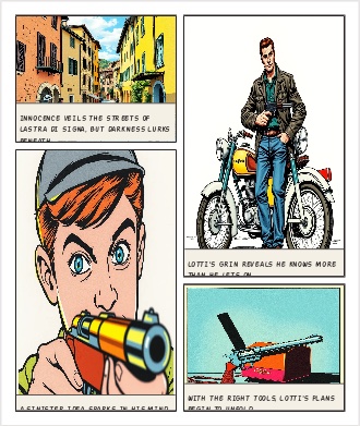 Come saprai la teoria di Segnini sul mostro di Firenze dice che lotti, dopo essere andato in motorino (un califfone) a lastra di Signa ed avere trovato per terra la Beretta calibro 22 utilizzata per uccidere Barbara Locci e Antonio Lo Bianco diventa poi l’unico serial killer mostro di Firenze e commette da solo tutti gli altri duplici omicidi . Puoi anche in questo caso fare una vignetta sarcastica, facendo capire pure che lotti é furbissimo e mettendo in grande evidenza il Califfone