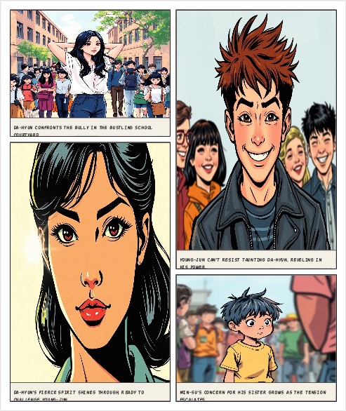 The characters are Min-su (Dahyun's younger brother, bullied by Young-jun), Da-hyun (Min-su's old...