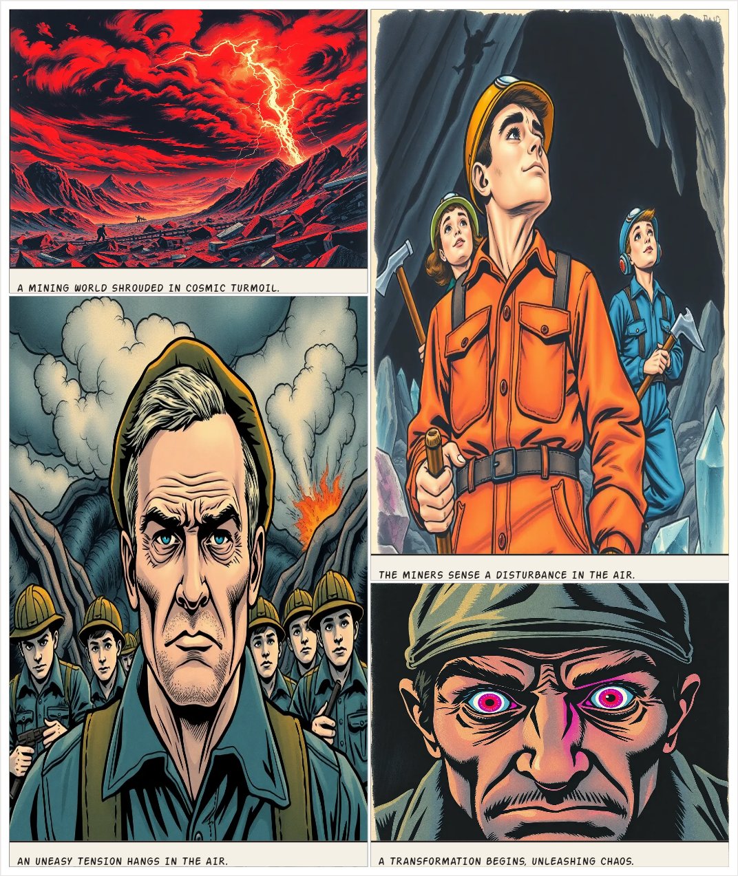 [Camera: Slowly zooms into Universe 7 – North Quadrant] Dark red clouds swirl around an unknown planet. Lightning cracks. Something is wrong with the natural ki flow. Narrator: “After the peace restored by Goku and his allies… a new cosmic disturbance begins to rise. One that no god has ever witnessed.” --- SCENE 1 – PLANET RADDUS A mining planet. Workers are mining energy crystals. Suddenly— BOOOOM! A miner transforms into a monstrous rage form. Eyes glowing purple, veins shining. Mine