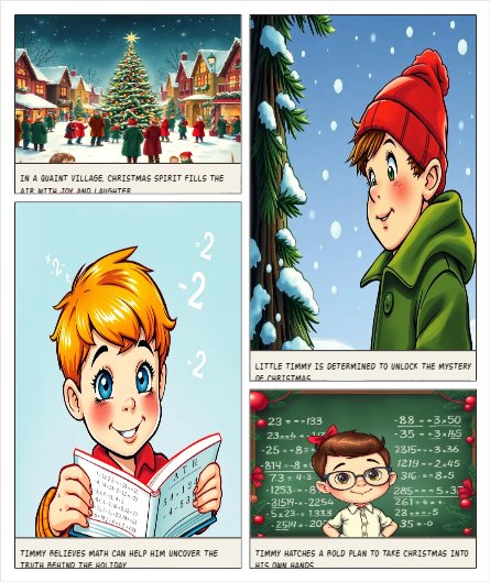 Create a professional, high-quality Christmas-themed comic strip titled: "Grinčas ir matematika:...