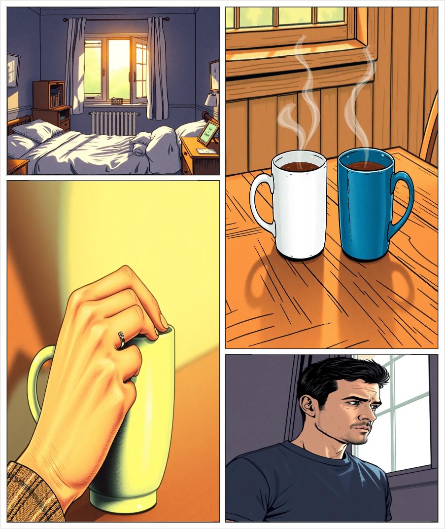 VPJC — Eight Years Between the Lines PAGE 1 — COVER Visual: Two silhouettes walking side by side at dusk. A thin line between them that hasn’t broken. Title: VPJC — Eight Years Between the Lines Subtitle: A story about love, memory, and what happens when fear speaks first. PAGE 2 — BEGINNING Panel 1: Morning light through a window. Caption: This story did not begin with a mistake. Panel 2: Two cups of coffee on a table. Caption: It began with eight years of choosing each other. PAGE 3 —