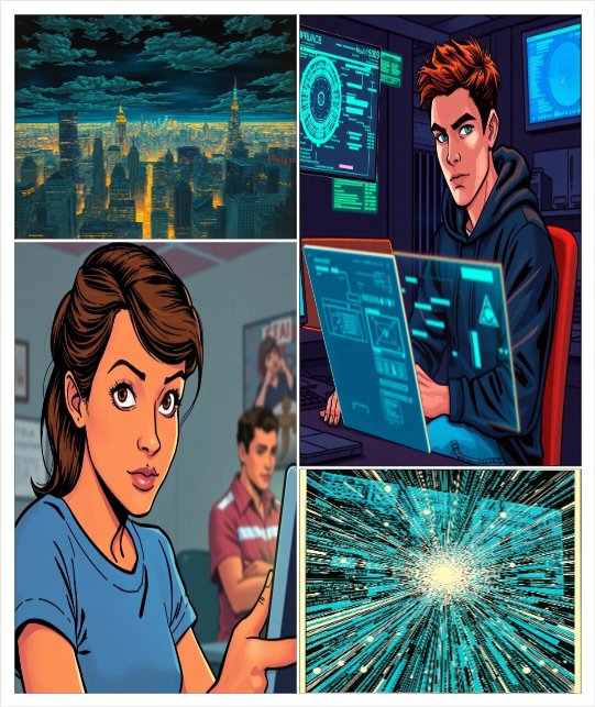 IA CÓMIC: La inteligencia artificial en acción CAPÍTULO 1 El cerebro que no duerme El mundo no se detiene. Ni siquiera cuando tú duermes. Mientras la ciudad descansa, millones de datos viajan a una velocidad invisible: mensajes, búsquedas, videos, rutas, decisiones. Y alguien —o algo— los observa. —¿Te has preguntado cómo tu celular sabe exactamente lo que te gusta? —preguntó Leo, mirando la pantalla que brillaba frente a él. —Es coincidencia —respondió Sofía—. No puede saber tanto. La pantalla
