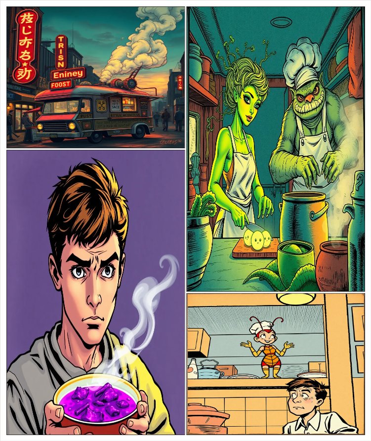 Five monster friends open a food truck serving dishes from their home dimensions, winning over sk...