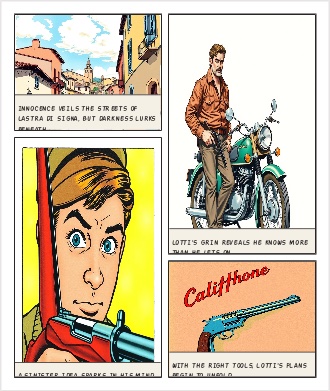 Come saprai la teoria di Segnini sul mostro di Firenze dice che lotti, dopo essere andato in motorino (un califfone) a lastra di Signa ed avere trovato per terra la Beretta calibro 22 utilizzata per uccidere Barbara Locci e Antonio Lo Bianco diventa poi l’unico serial killer mostro di Firenze e commette da solo tutti gli altri duplici omicidi . Puoi anche in questo caso fare una vignetta sarcastica, facendo capire pure che lotti é furbissimo e mettendo in grande evidenza il Califfone