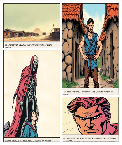 un héroe que se enfrenta a una personificación del hambre en una batalla y gana, y resuelve el hambre en un pequeño pueblo, al estilo de dragon nball