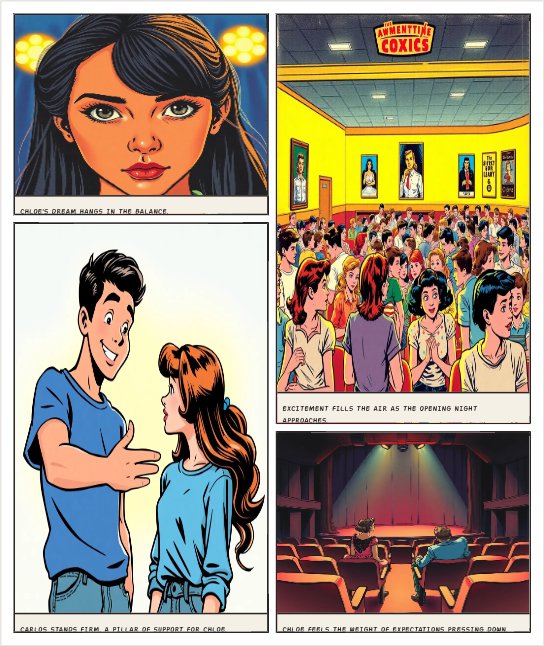 Esta página muestra los ojos de Chloe, el anuncio de la obra y el apoyo fundamental de Carlos