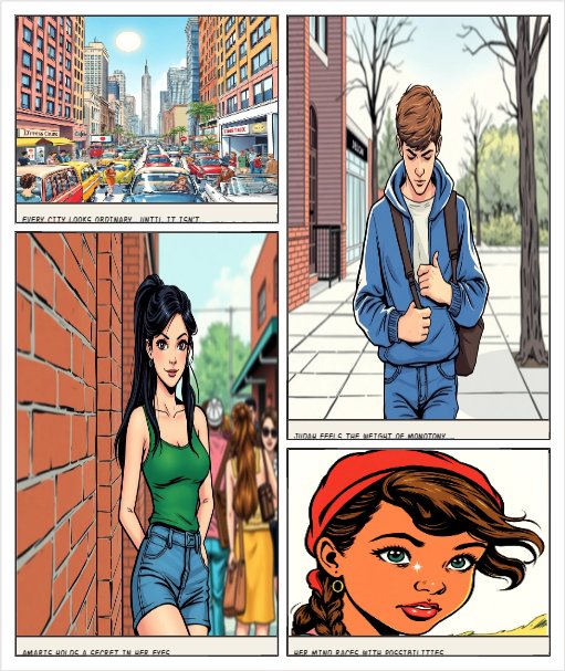 🟦 TRIARC Issue #1: The Day It Began Genre: Superhero • Action • Coming-of-Age Setting: Modern city, realistic, grounded Cast: Judah, Amaris, Eric, Zoe 🟨 PAGE 1 — A NORMAL DAY Panel 1 (Wide): Bright daylight city. Cars moving. People walking. A normal, busy afternoon. Caption: Every city looks ordinary… until it isn’t. Panel 2: Judah walks down the sidewalk with a backpack, thoughtful. Judah (thought): Same streets. Same routine. Panel 3: Amaris leans against a building, watching people p