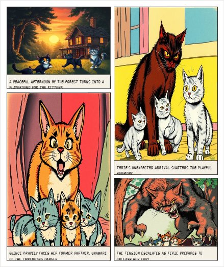 In the house by the forest, a black cat with a white paw and ice blue eyes was playing. Tiny and his siblings Ruby and Socks were playing. But the peace didn't last long when a huge dark brown tabby Maine Coon named Terie, who is also Quince's ex-partner, hissed and spat at her before attacking. Quince, a light gray female cat with yellow eyes, tried to stop her former partner but was pushed down before she was swallowed whole by her former partner. They watched the whole scene in fear before Te