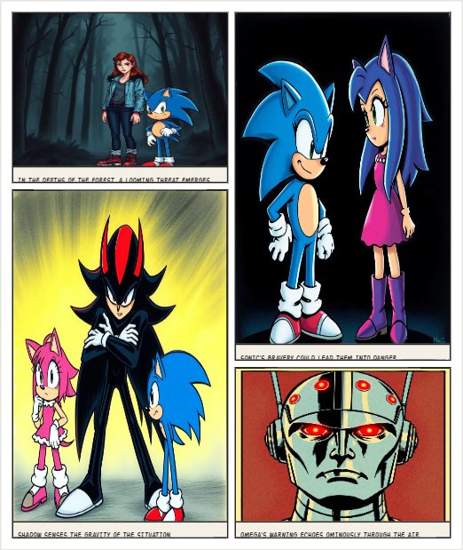 MAKE THIS: Amy: "Sonic... we don't know what it can do. Don't get too close." But Sonic didn't step back. Sonic: "It already knows me, Ames. Running now won't change that." Shadow crossed his arms, glaring at the ground like he could intimidate answers out of it. Shadow: "It wasn't just a message. It was a threat." Omega's sensors lit up red. Omega: "CORRECTION: A DECLARATION OF FUTURE HOSTILITY."