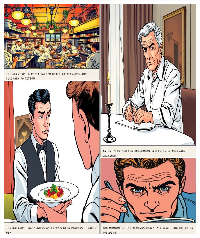 The bustling kitchen of Le Petit Jardin was a stark contrast to the refined dining room where Anton Beaumont sat, his silver-streaked hair neatly combed and his crisp white shirt tucked into tailored charcoal trousers. As the most feared food critic in Paris, his presence sent a ripple of anxiety through the restaurant staff. Anton's pen hovered over his notepad, ready to deliver another scathing review. "Monsieur, your appetizer," the waiter announced, placing a delicate plate before him. Anton
