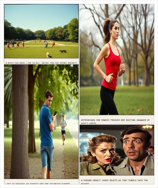 A woman jogging in the park crashes into am man. They both fall into a bush her clothes are rippe...