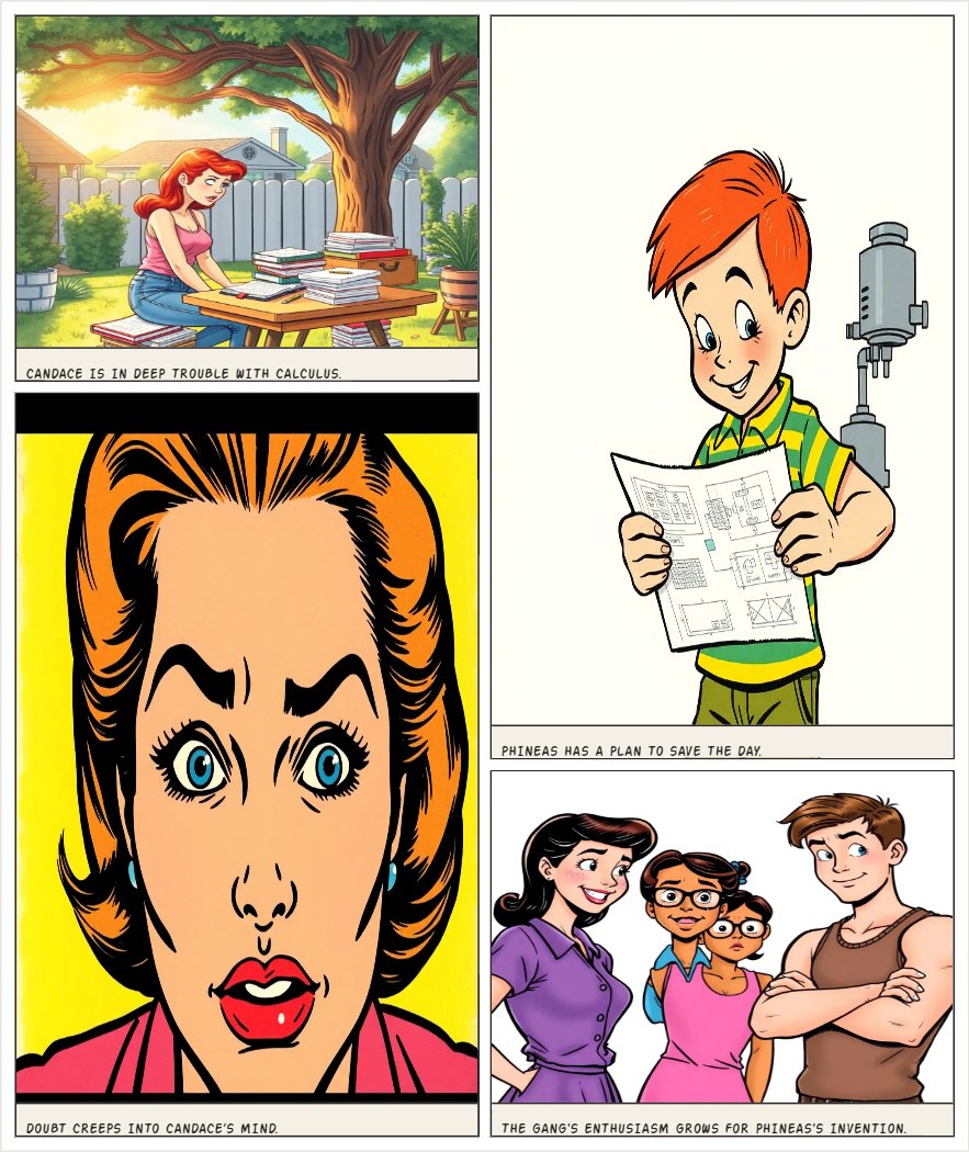 Write a Phineas and Ferb–style episode titled “The Triple-D.” Candace struggles with derivatives while studying, and Phineas overhears and decides to help by building the Derivative Demonstration Device, a machine that visually explains rates of change, slopes, and basic differentiation rules. Isabella, Baljeet, and Buford react in classic fashion. Meanwhile, Perry battles Dr. Doofenshmirtz, who creates a Derivative-Eliminator-Inator to erase calculus from Danville. Both machines malfunction and