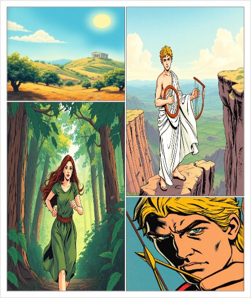 Fai uno fumetto con tutto il mito di apollo e Dafne