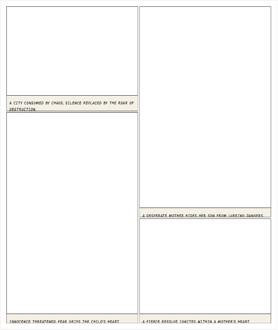 The city is completely vanished into fire and smoke,there are no living individuals,on each corner blood is visible on the land,corpses are every where,merceneries with arms are lurking in the shadows dieng to find alive humanbeing to kill them viciously.under a bridge a woman hid herself,her child is standing aside.