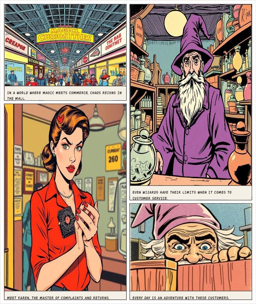 A wizard fed up with adventurers opens a magical item shop in a modern mall, dealing with Karen customers who want to return cursed artifacts without receipts