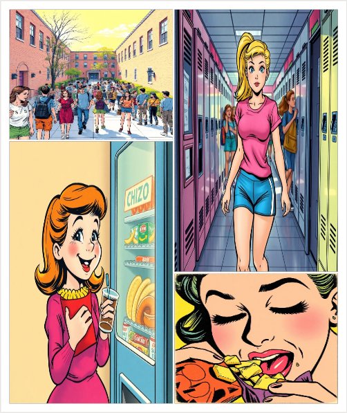 A pretty, slim sporty school girl eats lots of junk food and becomes fat