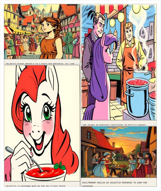 Геройня селестия поподает в средневековье но обычной девчонкой деревни ее тощнит от обычних блюд вроде сала или супов и сделает борщ все В ВОСТОРГЕ ведь вкус очень вкусный но дальше и сделает МНОГО БЛЮД но также она сталкиваеться с другими завистливыми поврами и начинают бороться за призвание лучшего повара но у селестий всегда еда самая вкусная