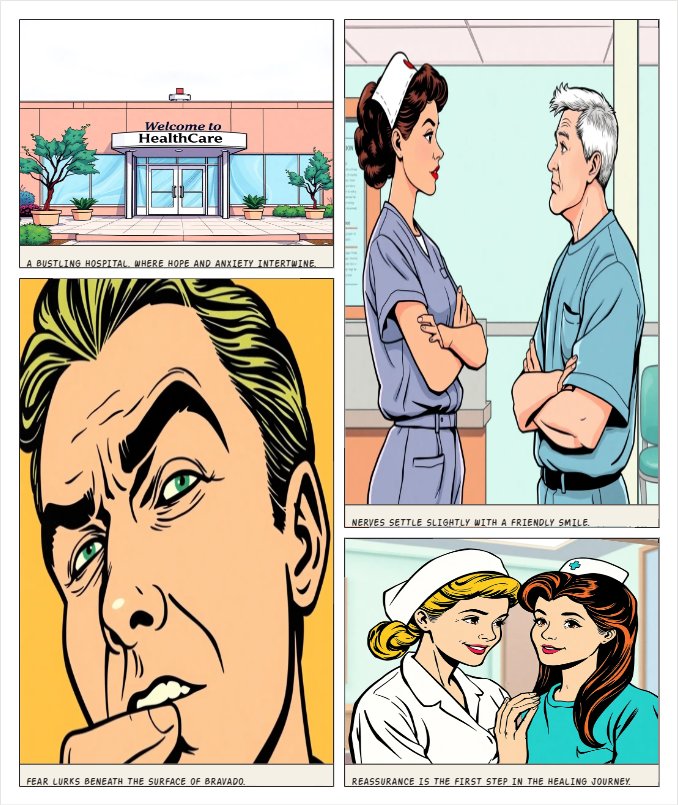 Crea un cómic con las funciones relacionadas con el protocolo de acogida de un nuevo paciente que se va a someter a una prueba diagnóstica o tratamiento En español