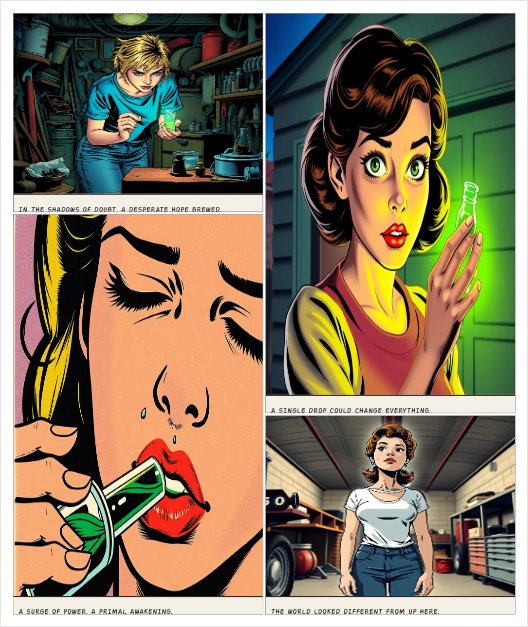 A quiet bullied but pretty girl finds A growth potion and she grows in height, muscles, tits and ass and she finds more and she keeps drinking and drinking and then she gets revenge