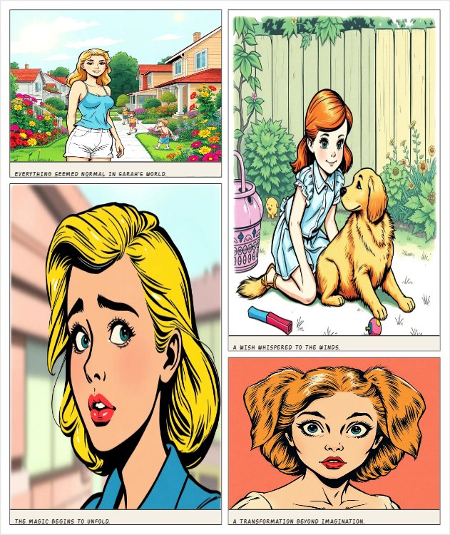 (a girl named Sarah that has blond hair and emerald green mixed with sappier blue colored eyes with an impressive curvy hourglass figure toned lean muscles and defined abs with well-rounded voluptuous curves dd cup size and well-defined rear with impressive flexibility and all around has everything swaps bodies with my female golden retriever sunny and after the swap was done Sarah's body's changes as her ears turn into those of a golden retriever and a tail grows from her tailbone and later Sar