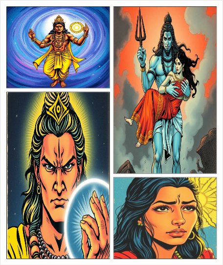 Lord vishnu carrying sudarshan chakra saying "stop it shiva " to lord shiva who was carrying mata...