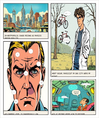 Akt I – Vorstellung & Thermalbad (Aufwaermen) • Wir lernen Oscar kennen: tagsueber Physiker, nachts Stadt-Held. • Die Stadt wird von mysterioesen „Chaos-Anomalien“ bedroht (Physik spielt verrueckt: Dinge schweben, Wasser laeuft rueckwaerts, Magnetfelder flippen aus). • Oscar stoppt eine erste kleine Anomalie, merkt aber, dass sein „Energielevel“ im Keller ist. • Seine Zentrale / KI / Freundin schickt ihn ins Thermalbad, um sich zu regenerieren und seine „Kraefte zu rekalisieren“.