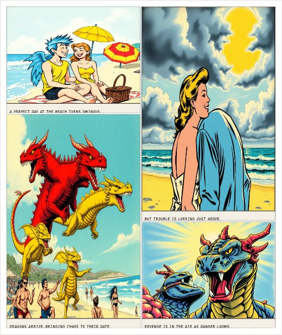 A boy with blue and white hair and wings named Blue sun was in the beach with his blonde girlfriend named Vanilla on a date until suddenly 3 humanoid dragons flew down upon them, one red humanoid dragon named Ghidorah and two yellow humanoid dragons named Ichi and Kevin who are the brothers of Ghidorah. he came back to get his revenge on Blue sun for beating him in a rap battle from the restaurant, so Ghidorah kidnaps Vanilla and flies away with his brothers. Blue sun chased them to save her.