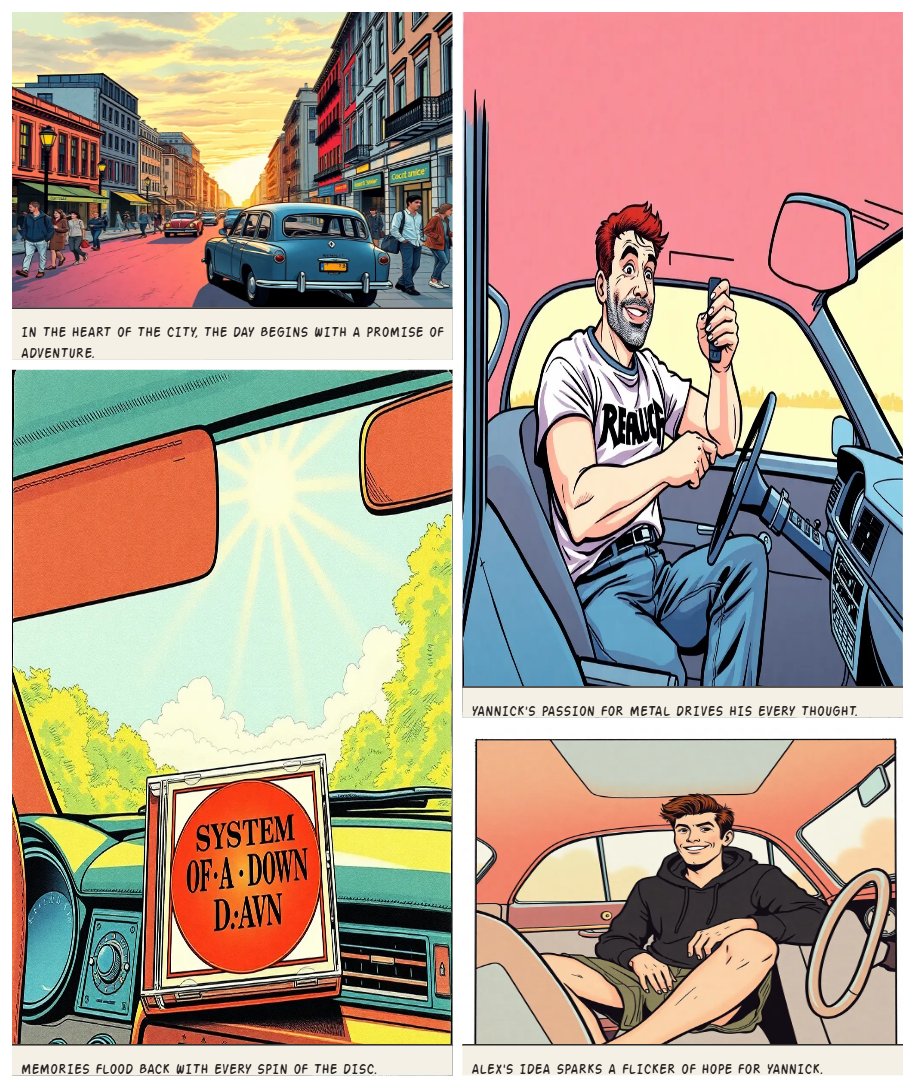 Yannick a 59 ans et Alex 26ans, ils sont fan de métal, ils ont fait plusieurs fois le Hellfest à Clisson en 2019, 2022,2023,2024 et 2025. Ils y ont vu les groupes de leurs rêves : Iron Maiden, LinkinPark, Gojira, Ultra vomit, Sabaton, Muse, the Offspring… Mais il manque 1 groupe dans cette liste, le groupe favori de Yannick, System Of A Down. Yannick adore ce groupe, possède tous les albums du groupe, ils les écoutent sur la route du travail dans son Renault Scenic.