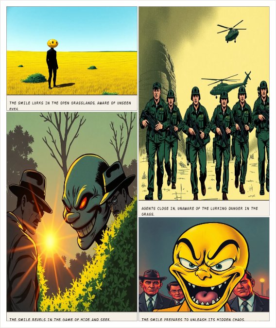 The smile character (a vary tall Black figure with a yellow smile head) lurks around the flat grasslands until the government surrounded the beast and captured it for science.