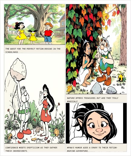 I want to make a story from school cinema class 5 the movie name is Myna and Asterix and at first they start to collecting items to make Asterix's potion