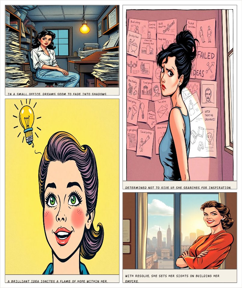 its a story about an entreprenuer who struggle in the first place but suddenly with a great idea she turn her struggling business into an empire